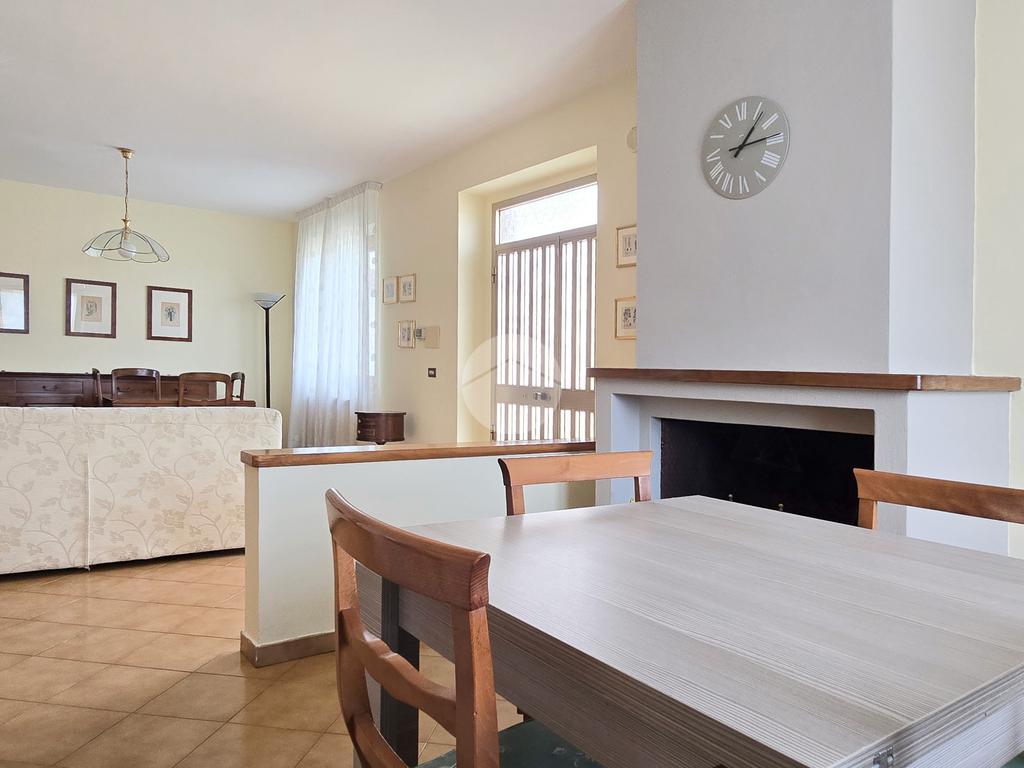 All’interno troviamo un soggiorno open space con camino, dove salone e cucina convivono in un unico ambiente, con la possibilità di dividerli facilmente. La zona notte è composta da due camere matrimoniali, una camera singola e due bagni finestrati, uno con doccia e uno con vasca.